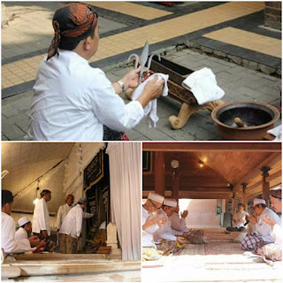 Dengan membaca shalawat, salah satu sesepuh kemudian mengambil sebuah kotak yang tersimpan di atap tajug.
