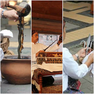 Travelklik - Kudus, Suasana tajug kompleks Masjid Menara dan Makam Sunan Kudus, pagi itu terasa berbeda dari hari-hari biasanya. Terlihat kepulan asap kemenyan yang sengaja dibakar, bau harum menebar keseluruh ruangan sehingga membuat bangunan berbentuk pendapa kecil tersebut terasa sangat sakral.