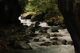 Coba ke arah sana, kita lanjut dengan menyusuri arah hilir sedikit lagi. Ada sebuah goa yang indah, dindingnya dihiasi berbagai ornamen yang membentuk batu Kristal, Stalaktit, serta Stalagmit yang meruncing dan seolah siap untuk menghujam ke bawah. Sesekali air menetes dari ujung batu tersebut dan mengukir lubang kecil di bawahnya.