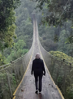Travelklik - Jembatan gantung (suspension bridge) yang membentang diantara lebatnya hutan kayu damar menjadi pilihan utama saat kita berwisata ke kawasan wisata Situ Gunung yang lokasinya masuk ke dalam wilayah Taman Nasional Gede Pangrango. Jembatan setinggi 150 meter dengan panjang 240 meter memang sangat indah dan instagramable, menyajikan pemandangan landscape yang luar biasa indah, apalagi jika kamu datang di waktu yang tepat, yakni saat sore hari, dengan dihiasi sinar matahari senja, atau saat pagi hari, dimana sinar matahari baru muncul disertai kabut tipis, membawa kamu pada suasana Jurassic World.