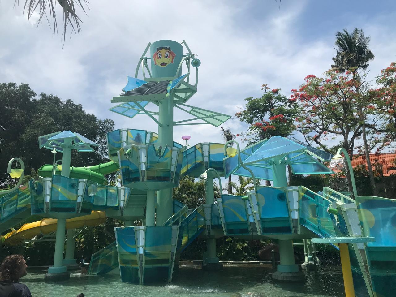 “Salah satu daya tarik utamanya adalah taman bermain AquaPlay, yang dilengkapi menara setinggi 15 meter bernuansa biru dan kuning cerah, mencerminkan keindahan alam tropis khas Bali,” dalam keterangan.