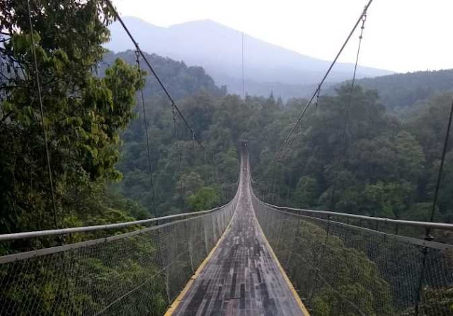 Travelklik - Jembatan gantung (suspension bridge) yang membentang diantara lebatnya hutan kayu